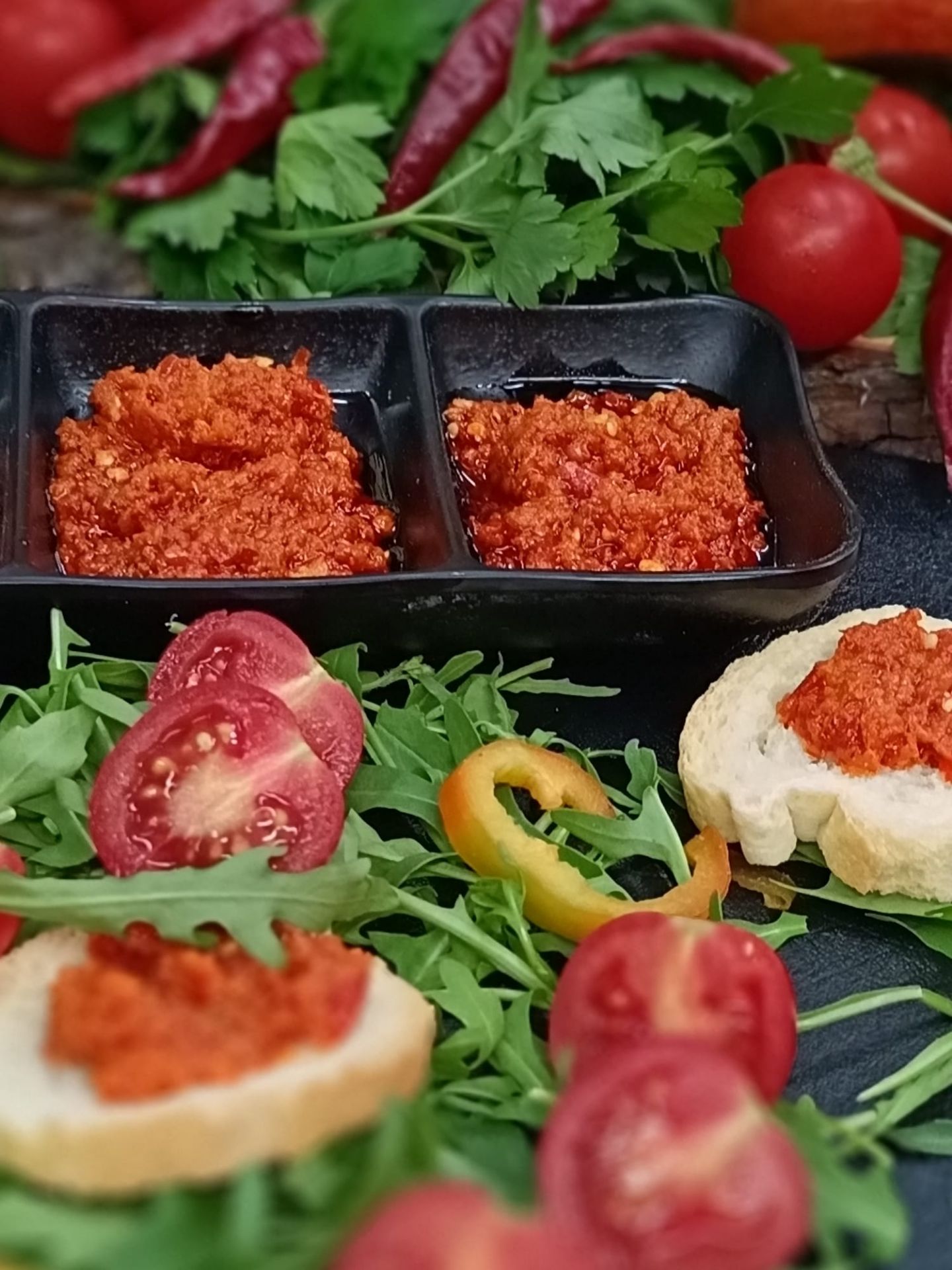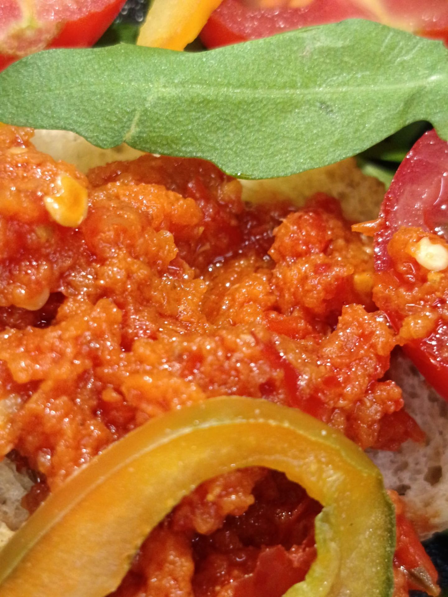 Mixed vegetables (spicy chilli pepper 40%, aubergines 23%, dried tomatoes 4%, capers 2%) sunflower seed oil 29%, basil, garlic, black pepper, salt, wine vinegar, acidity regulator E330, antioxidant: E300