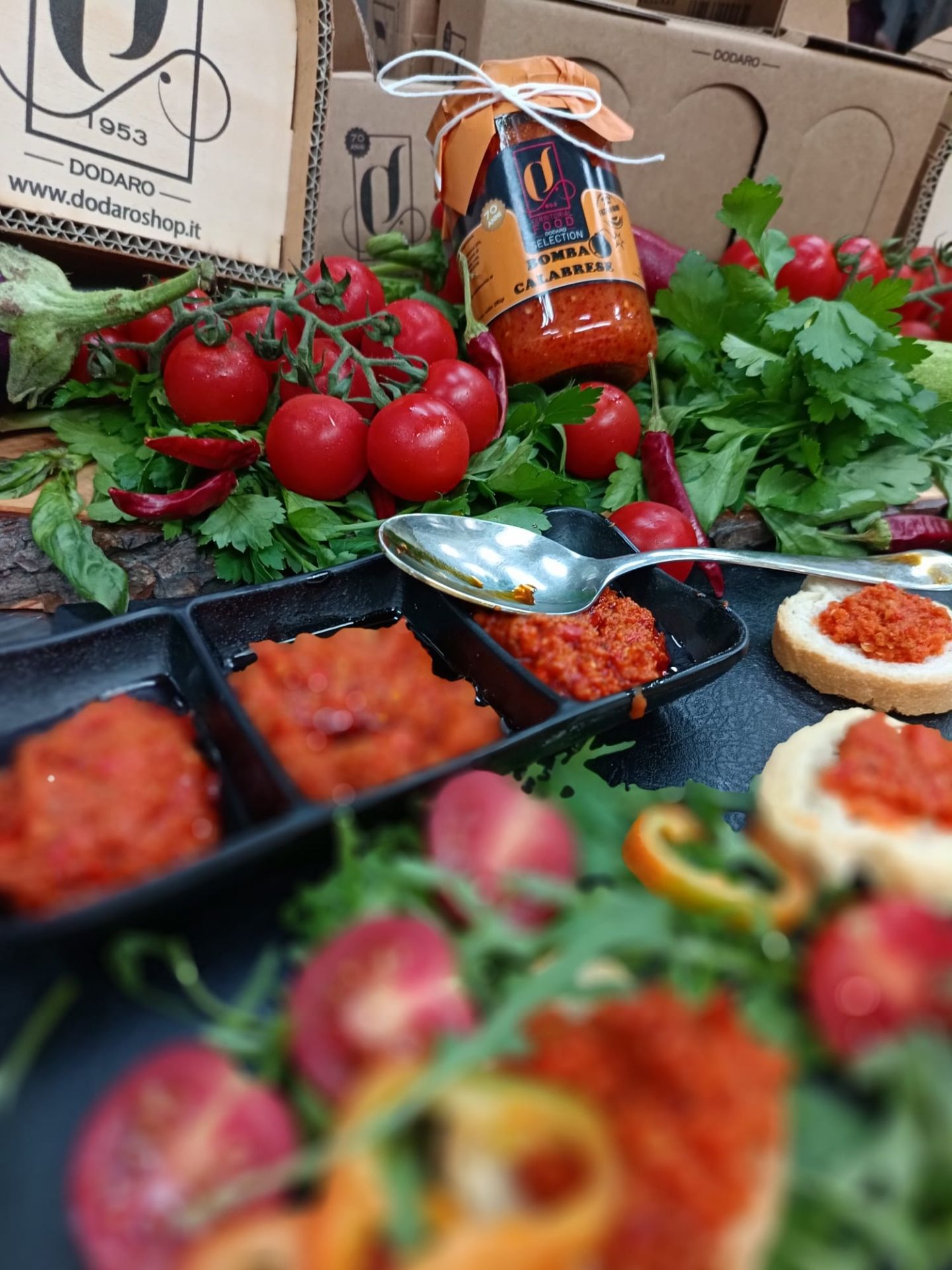 All of Calabria concentrated in this jar, a unique and spicy product with an inebriating flavour, to be accompanied with red or rosé wine, beer or even soft drinks, it can easily be combined with bruschetta, aperitifs or on pasta.